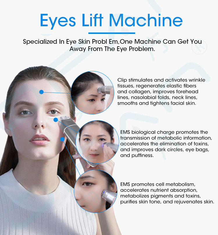 Es una especie de máquina de belleza de ojos de nueva versión. Con la tecnología del sistema de ojo orgánico inteligente (CLIP) y la corriente biológica (EMS) para obtener ojos hermosos.